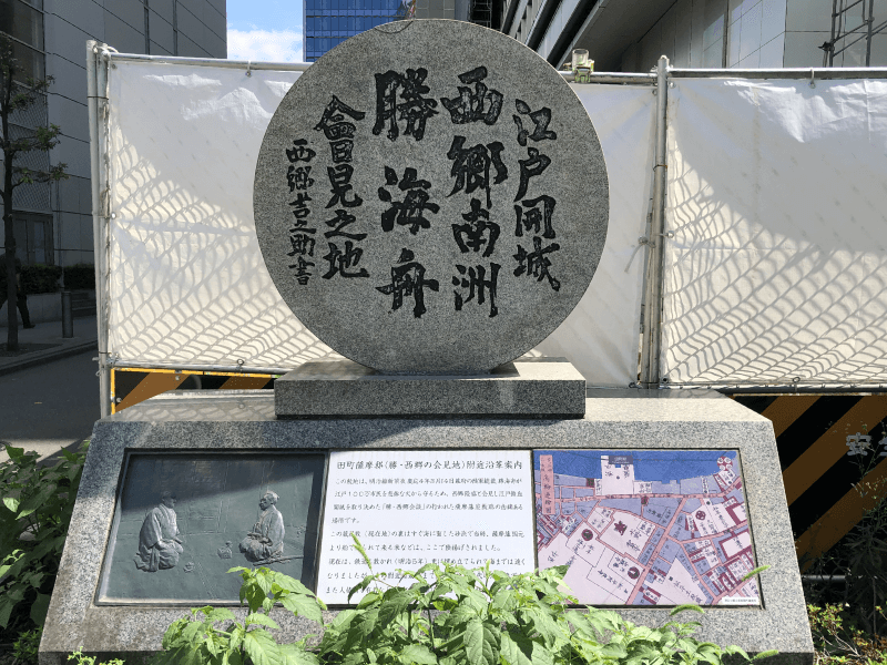 実はここ,あの勝海舟と西郷隆盛が江戸無血開城に関する会談を行った薩摩藩屋敷跡なのですね.